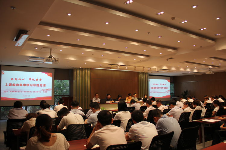 在全党深入开展“不忘初心、牢记使命”主题教育的大背景下,7月29日上午,文投金融董事长兼总经理、党支部书记赵晓霞结合《习近平新时代中国特色社会主义思想学习纲要》,以《不忘初心,服务实体经济;牢记使命,专注普惠金融》为题,为公司全员80余人讲了一堂专题党课。公司总会计师、党支部纪检委员赵书谈主持了本次专题党课。