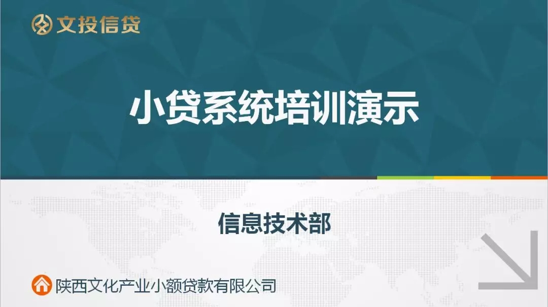 12月18日上午,文投信贷信息技术部负责人林阳在陕文投集团8楼会议室,以《小贷系统培训演示》为主题,给公司全员做了关于自主研发系统的培训分享会。